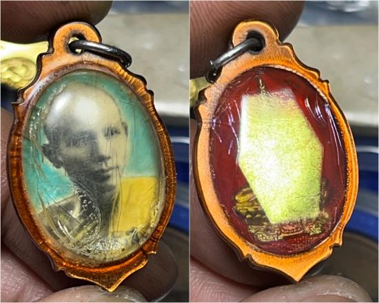 ล็อกเก็ตรูปถ่ายลงสี หลังพระพุทธเหลี่ยมเพชร กะไหล่รุ้ง เลี่ยมวินเทจ ไม่ทราบสำนักครับ สวยคลาสสิค
