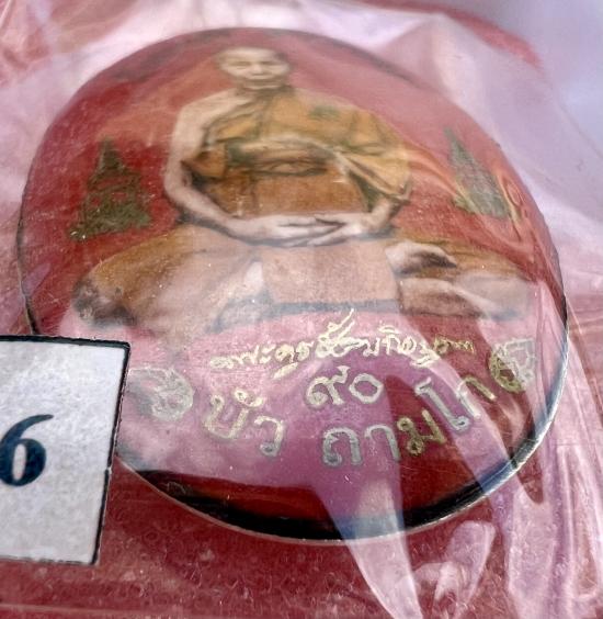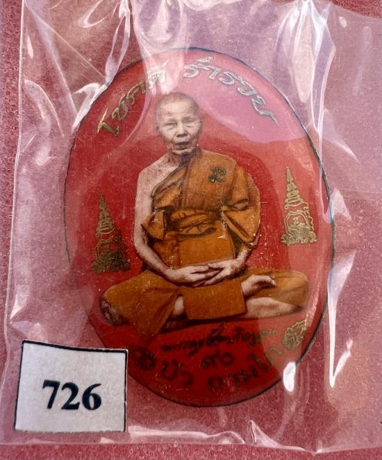 ล็อกเก็ตโสฬสมงคล90ปี สีแดงตัวหนังสือทองหลังเงิน เลข726 ซีลเดิม
