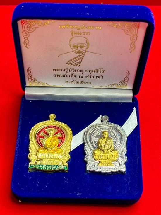 เคาะเดียวแดง เหรียญนั่งพาน รุ่นแรก หลวงปู่บัวเกตุ ปทุมสิโร 1กล่อง มี 2 องค์ |
