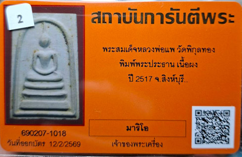 พระสมเด็จหลังรูปเหมือน หลวงพ่อแพ วัดพิกุลทอง ปี 2517 |