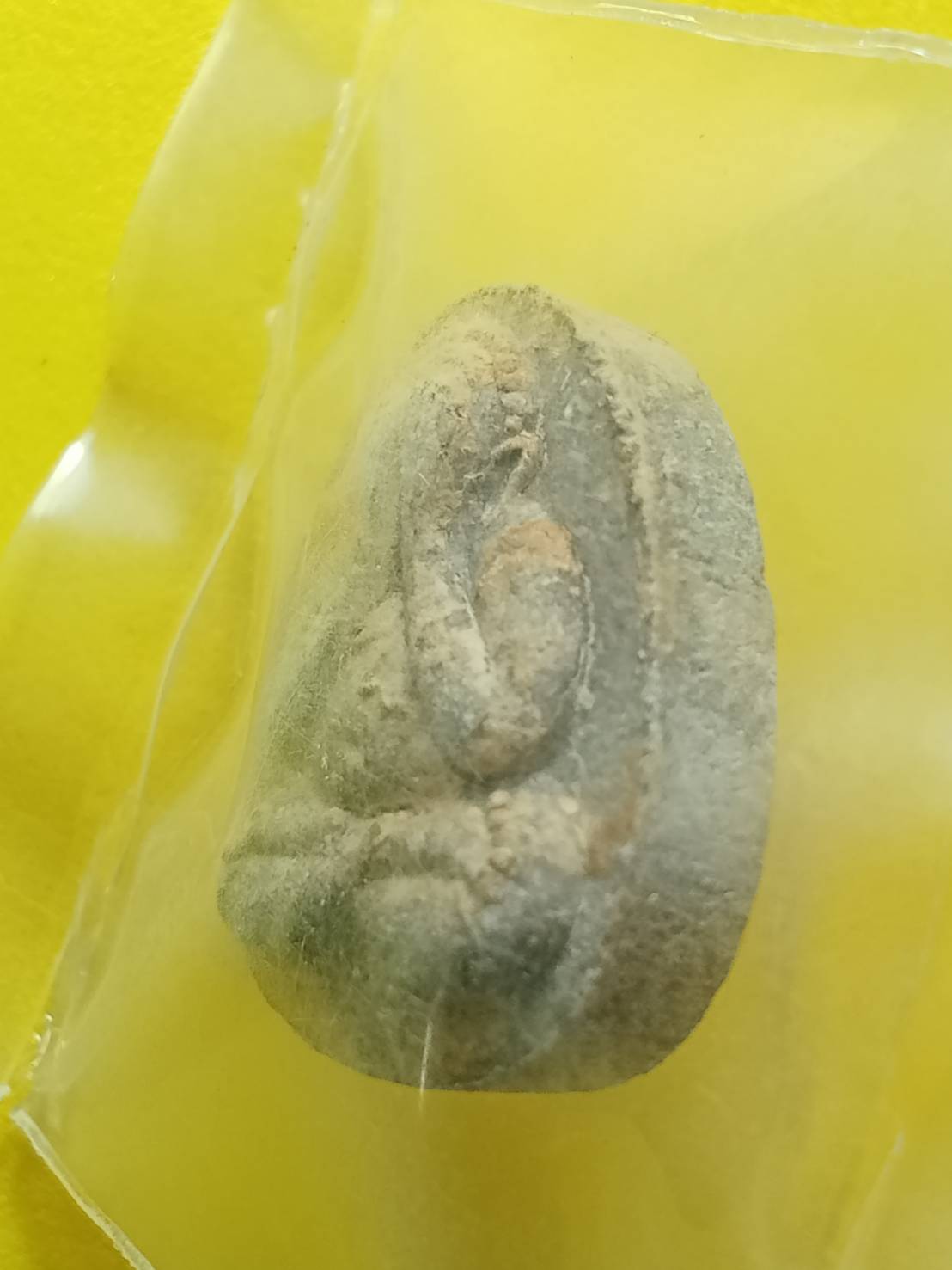 เคาะเดียว พระในซองพลาสติกซีลเดิม พระปิดตายันต์ดวงเล็ก เนื้อผงใบลานแช่น้ำมนต์ (คราบน้ำมนต์หนา)สอดตะกรุดเงิน สมเด็จพระญาณสังวร(เจริญ สุวัฑฒโน ปธ.๙) วัดบวรนิเวศวิหาร ๒-๓ ตุลาคม ๒๕๒๓ |