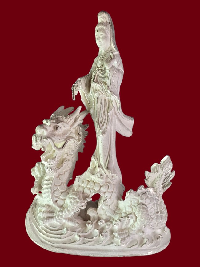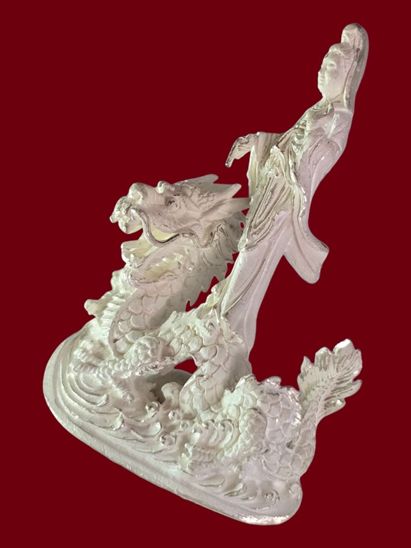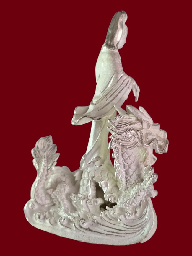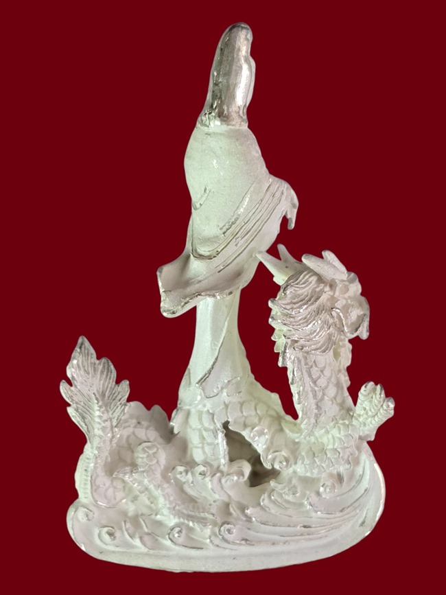 เคาะเดียว เริ่มที่100บาท....เจ้าแม่ กวนอิม ประทับมังกร เนื้อเงิน เดิม ไม่ทราบที่ ปีสร้าง