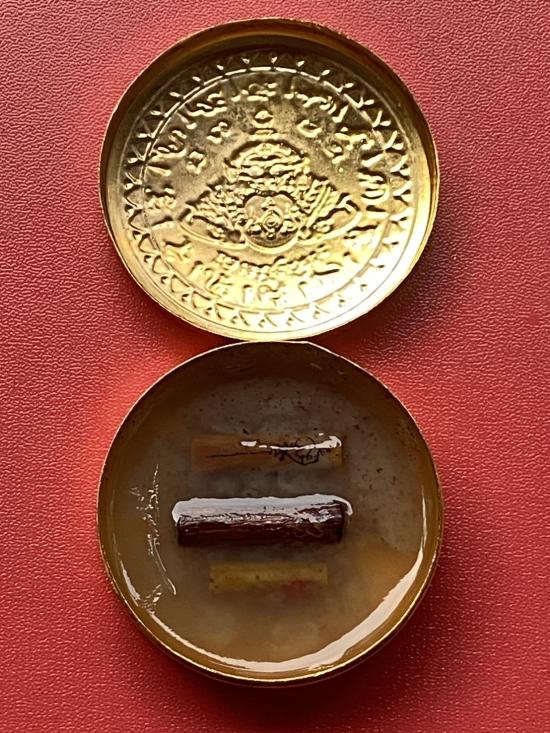 เนื้อ โลหะชุบทองลงยาสีดำขอบสีแดง ขนาด 5ซม |