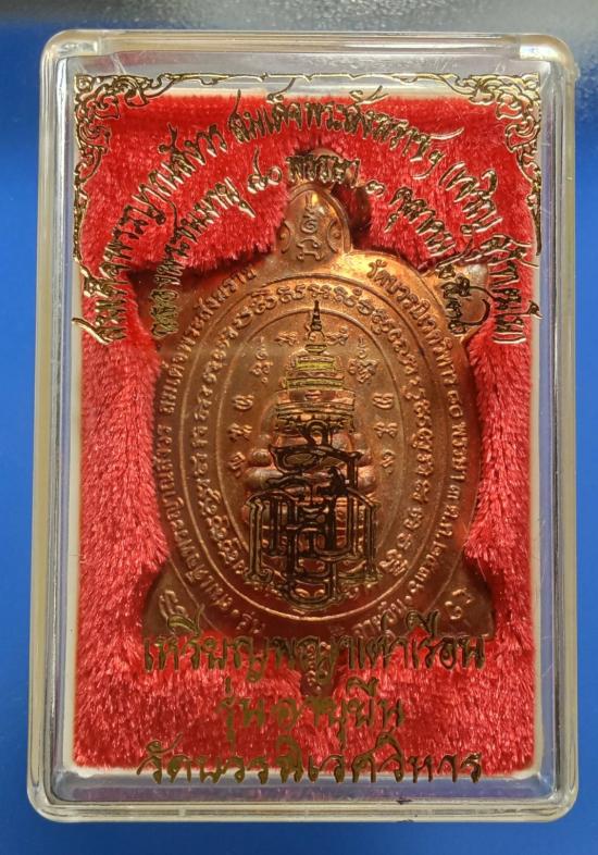 พญาเต่าเรือน รุ่นอายุยืน ฉลองพระชนมายุ ๘๐ พรรษา ๓ ตุลาคม ๒๕๓๖ เนื้อทองแดงผสมชนวนพระสังกัจจายน์ญส.ปี ๒๕๓๐ (พระสังกัจจายน์ญส.รุ่นแรก ปี ๒๕๓๐ เป็นรุ่นสำคัญมีส่วนผสมของชนวนพระกริ่งบวรรังสี ๒๕๒๘ และชนวนพระกริ่งปวเรศ ๒๕๓๐ ล้วน ๆ โดยไม่มีชนวนพระรุ่นอื่นเจือปนเลย) พิธีพุทธาภิเษก-ชัยมังคลาภิเษก ณ พระอุโบสถวัดบวรนิเวศวิหาร หลวงปู่หลิว ปณฺณโก วัดไร่แตงทอง เทพเจ้าแห่งพญาเต่าเรือน ร่วมปลุกเสกในพิธี หลวงพ่อเปิ่น หลวงพ่อแย้ม วัดสามง่าม หลวงพ่อพูล วัดไผ่ล้อม หลวงพ่อไสว วัดปรีดาราม หลวงพ่อแช่ม วัดดอนยายหอม หลวงพ่อยิด วัดหนองจอก หลวงพ่อสง่า วัดบ้านหม้อ ฯลฯ ร่วมพิธี เคาะเดียว พระมาพร้อมกล่องเดิม