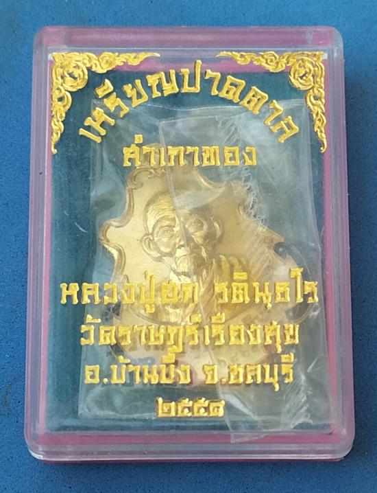 เหรียญปาดตาลสำเภาทอง เนื้อฝาบาตรลงยา เลขสวย 56768 หลวงปู่ฮกวัดราษฏร์เรืองสุข บ้านบึง ชลบุรี 2558 |