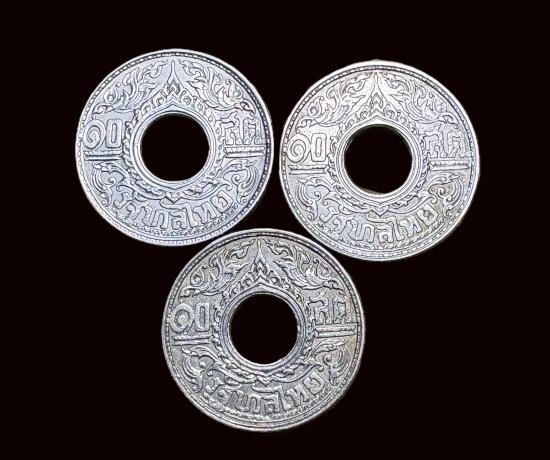 3 เหรียญ สตางค์รู 10 สต เนื้อเงิน พศ 2484