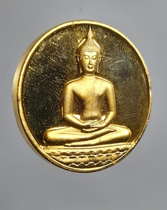 เหรียญพระพุทธสิหิงค์ เนื้อชุบทองปัดเงา สวยเดิมพร้อมกล่อง หลวงพ่อเกษม เขมโก ปลุกเสก กรมธนารักษ์สร้าง |