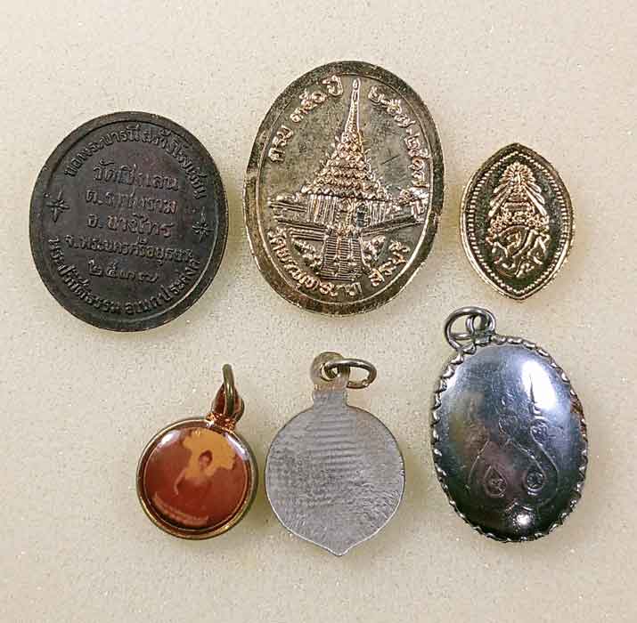 เหรียญ 3 เหรียญ + ล็อกเก็ต 2 องค์ ร.5 + ล็อกเก็ต หลวงขุมพรฯ + เหรียญ 5 บาท 3 เหรียญ + เหรียญ10บาท 2 เหรียญ + เหรียญต่างประเทศ 4 เหรียญ |