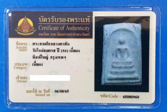 พระสมเด็จ พิมพ์ใหญ่ หลวงตาพัน วัดใหม่อมตรส ปี 02 มาพร้อมบัตร ท่าพระจันทร์+ใบประกาศติดที่ 1