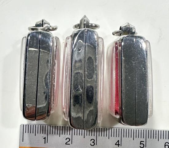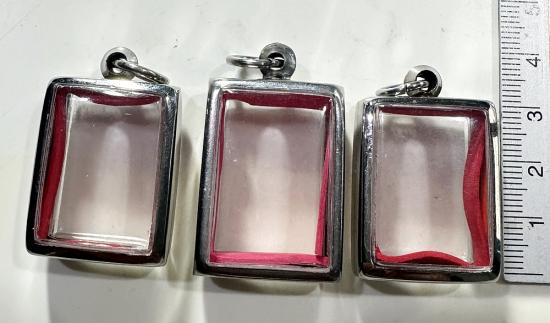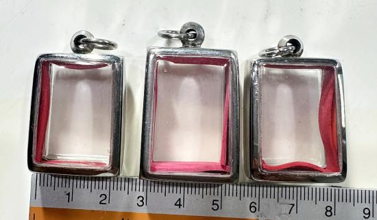 ตลับมือสองสแตนเลสทรงสี่เหลี่ยมใส่พระคำข้าวหรือพระวัดปากน้ำได้ 3 ใบแบบเปิดหน้า-หลังขนาด 3 x 2.5 ซม. |
