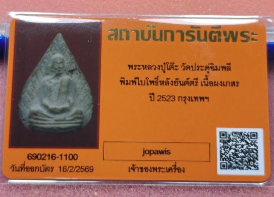 หลวงปู่โต๊ะ วัดประดู่ฉิมพลี ปี2523 พระผงรูปเหมือน พิมพ์ใบโพธิ์ หลังยันต์ตรี พร้อมบัตรการันตี