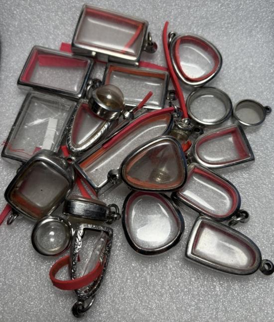 กรอบพลาสติกใส่พระเครื่อง คละแบบกันประมาณ 20 ชิ้นค่ะ (ของเก่านะคะ)