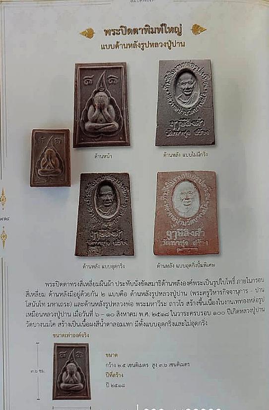 ๓.พิมพ์ใหญ่ ไม่มีกริ่ง เนื้อผงสีแดงอมเทา ด้านหลังเป็นรูปหลวงพ่อ ใต้รูปเขียนว่า ฤาษีลิงดำ ศิษย์หลวงพ่อปาน รุ่น ๑. ๑๐,๐๐๐.