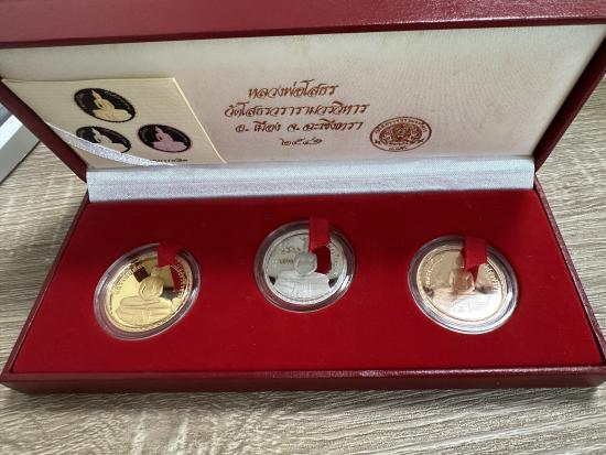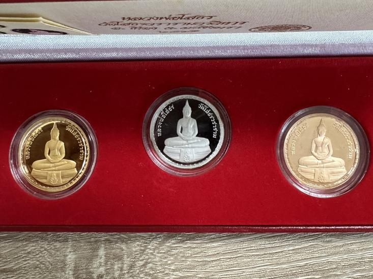 วัดใจเคาะเดียวแดง เหรียญหลวงพ่อโสธร เหรียญขัดเงา3มิติ ปี2541 ชุด3เหรียญ เนื้อเงิน ขัดเงาพ่นทราย ,ทองแดงชุบทองไมครอน ,ทองแดงขัดเงาพ่นทราย (สวยงาม)