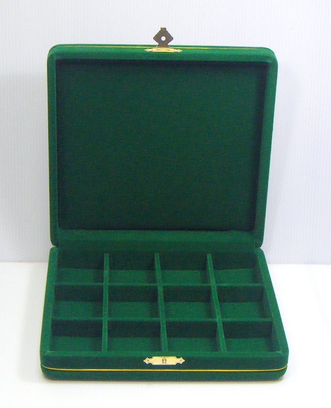 วัดใจ1บาท!!!!! เป็นของขวัญสำหรับท่านสมาชิกนะคะ กล่องใส่พระแบบ 12ช่อง หุ้มกำมะหยี่สีเขียวมรกต สวยหรู ใส่พระพร้อมกล่องพลาสติกได้เลยคะ มือ1ใหม่เอี่ยมนะคะ