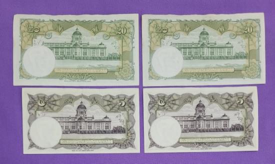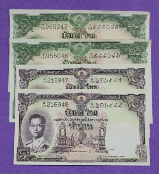 ธนบัตร ร.9 โทมัส 20 บาท 2 ฉบับ 5 บาท 2 ฉบับ