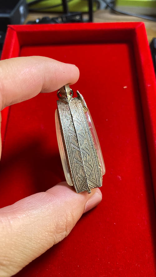 วัดใจของเหมามาขายถูกตามสภาพ ตลับเงินโลหะผสม ใส่พระพิมพ์ปู่ทวดเตารีดหรือกริ่งใกล้เคียง |