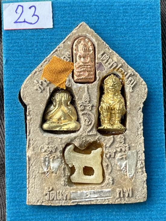 เนื้อว่าน ๑๐๘ หลังฝังตะกรุดเงิน 5 ดอก ปรก ปิดตาหลังรูปเหมือน หนุมาน แพะเขาควายเผือก จีวร หมายเลข 23 |