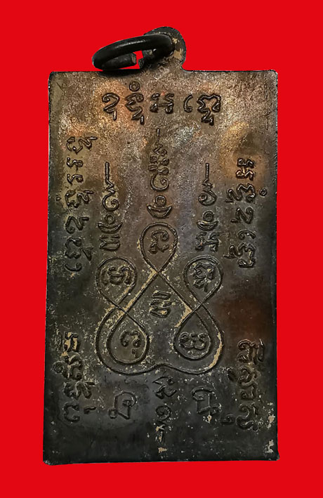 เหรียญหลวงพ่อแช่ม วัดฉลอง พิมพ์สี่เหลี่ยมตัวหนังสือโค้ง เนื้อทองแดง ห่วงเดิม ปี2512 จ.ภูเก็ต + บัตรG-pra |