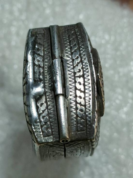 วัดใจ 150 ตลับเงินมือ 2 สภาพสมบูรณ์ งานมือเงินเปอร์เซ็นต์ดี ขนาดสูง 3.6 ซม. ขนาดกว้าง 2.2 ซม. ขอบหนา 1 ซม. น้ำหนัก 11.4 กรัม