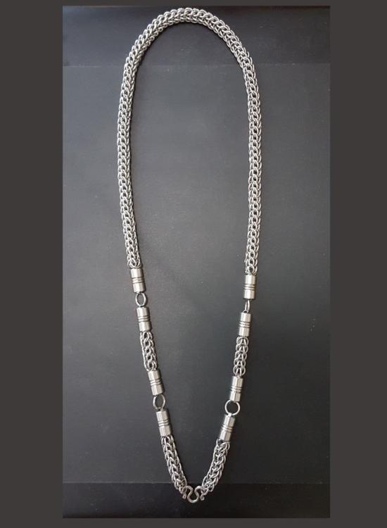 สร้อยสแตนเลสห้อยพระ 5 องค์ กว้างขนาด 8 มิล ยาวทั้งเส้นประมาณ 28 นิ้ว |