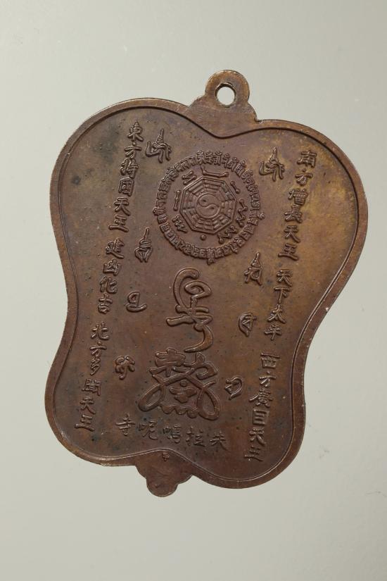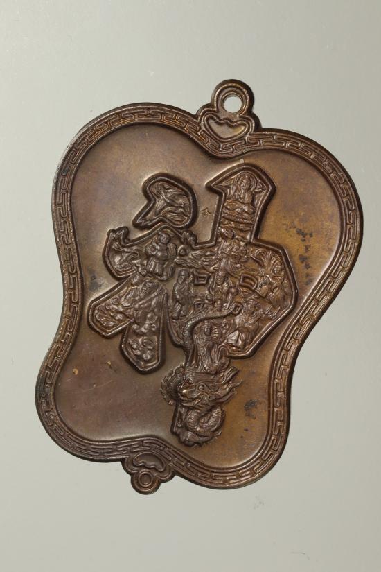 เหรียญแปดเซียนบนตัวมังกร ที่เขียนว่าซิ้ง รูปพัดจีน พระอาจารย์อิฐฏ์ วัดจุฬามณี บล็อกกษาปณ์ เนื้อทองแดง