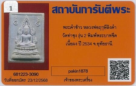 พระคำข้าว รุ่น 2 พิมพ์พระบาทขีด หลวงพ่อฤาษีลิงดำ วัดท่าซุง จ.อุทัยธานี