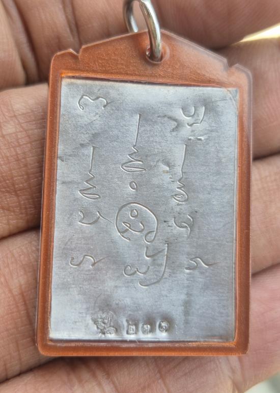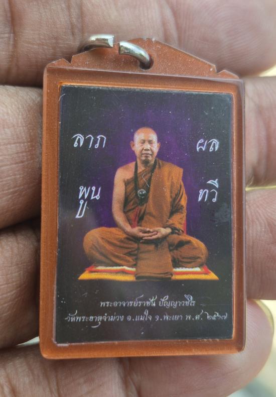 วัดใจ รูปถ่าย ลาภผล พลูทวี พระอาจารย์ราชัน วัดพระธาตุจำม่วง หลังตะกั่วจารมือ เลี่ยมพลาสติกโบราณ