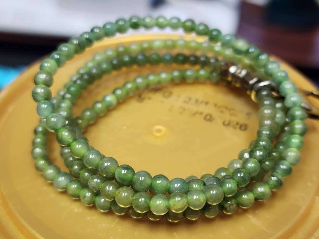 สร้อยหยกยาวกว่า 11นิ้ว เม็ดหยกเล็กร้อยด้ายแขวนพระมีน้ำหนักได้ |