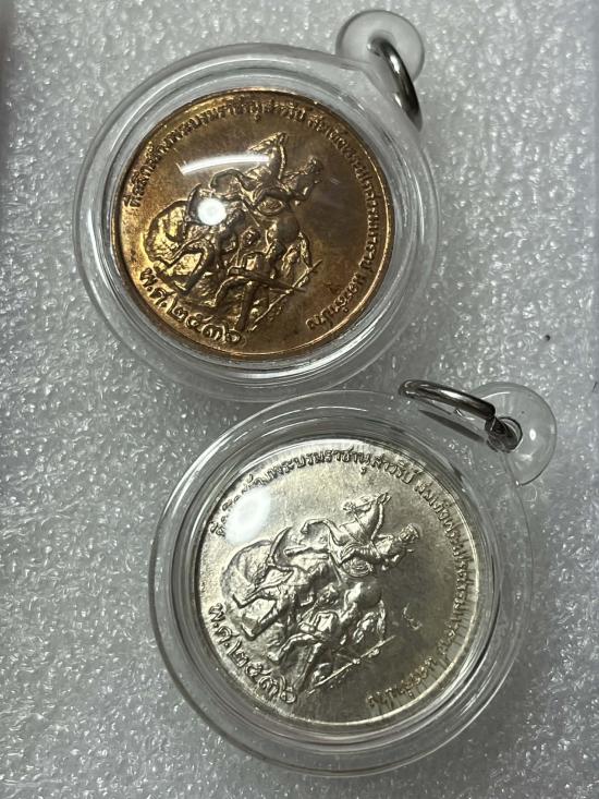 หลังพระนเรศวร เนื้อเงิน กับ ทองแดง หลวงพ่อเกษม ปี 36