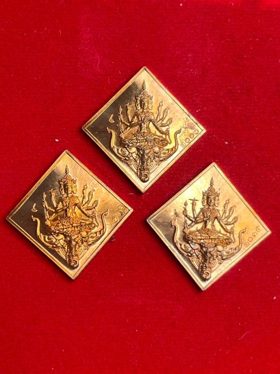 เหรียญพรหมเอราวัณ หลวงพ่อสิน วัดละหารใหญ่ เนื้อทองแดง ปี 2559 ( 1 กระดาน 3 องค์) |