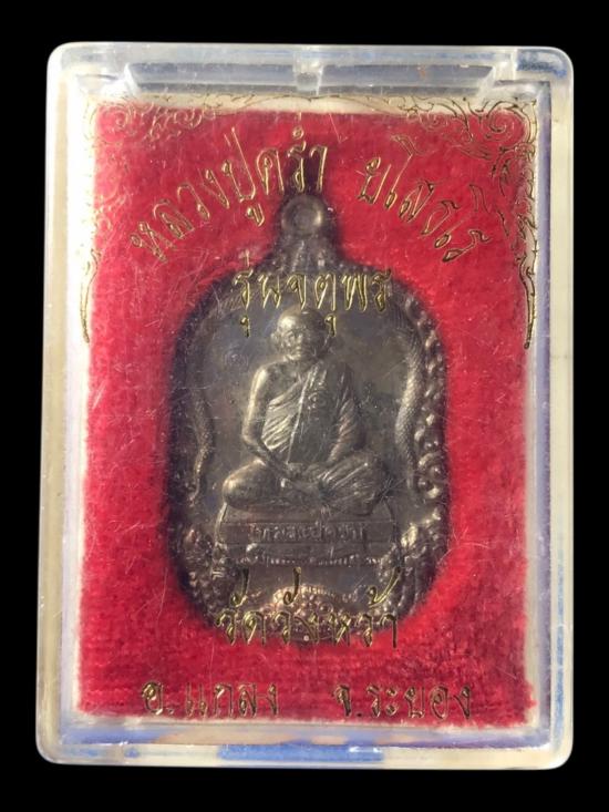เหรียญเสมา หลวงปู่คร่ำ วัดวังหว้า อ.แกลง จ.ระยอง รุ่นจตุพร ที่ระลึกในการสร้างศาลาการเปรียญ วัดกุฏโง้ง เนื้อนวะ ปี 2537 พร้อมกล่องเดิม |
