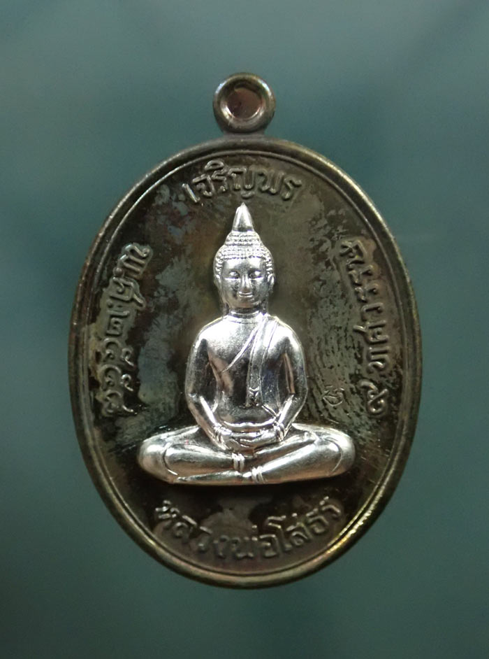 เหรียญรูปไข่เจริญพรบน (รุ่นแรก) หลวงพ่อโสธร รุ่น 9 ทศวรรษ ปี 2558 เนื้อนวะหน้ากากเงิน หมายเลข 23 พร้อมกล่องเดิม (พระสูงขนาด 3.4 ซ.ม.)