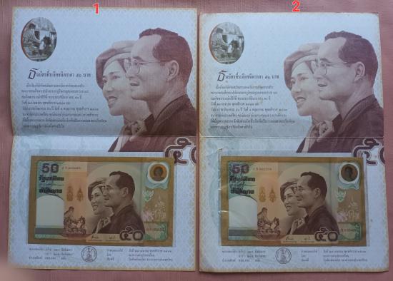 *เคาะเดียว* ธนบัตรที่ระลึกชนิดราคา 50 บาท ราชาภิเษกสมรส บรมราชาภิเษก ครบ 50 ปี ปี2543 ((( จำนวน 2 ใบ พร้อมปก )))