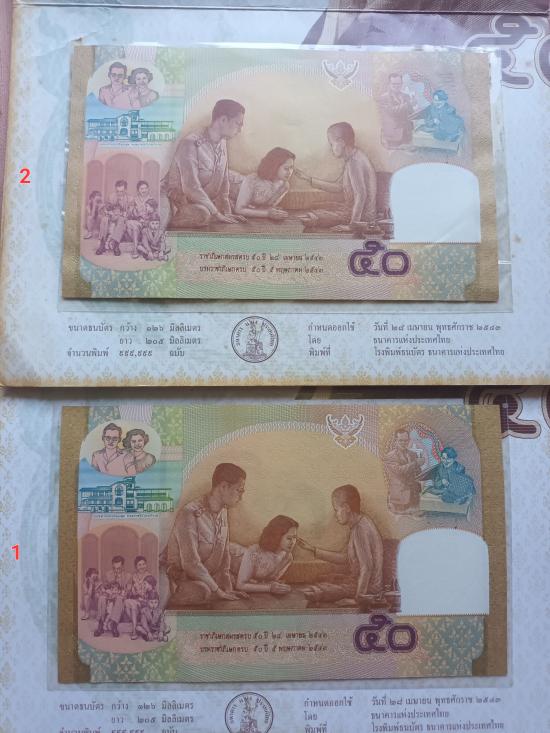 ธนบัตรที่ระลึกชนิดราคา 50 บาท ราชาภิเษกสมรส บรมราชาภิเษก ครบ 50 ปี ปี2543 เก่าเก็บ ( ปกไม่สวย 1 ใบ + มีรอยงอนิด จากการเก็บ )