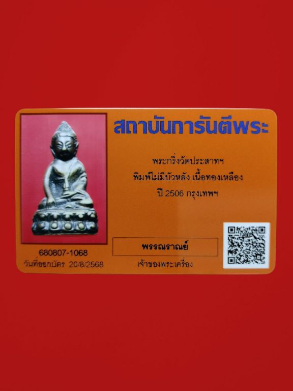 พระกริ่งวัดประสาท พิมพ์ไม่มีบัวหลัง ปี 2506 มาพร้อมบัตรรับรองพระแท้พึ่งออกมาใหม่ สบายใจได้ค่ะ