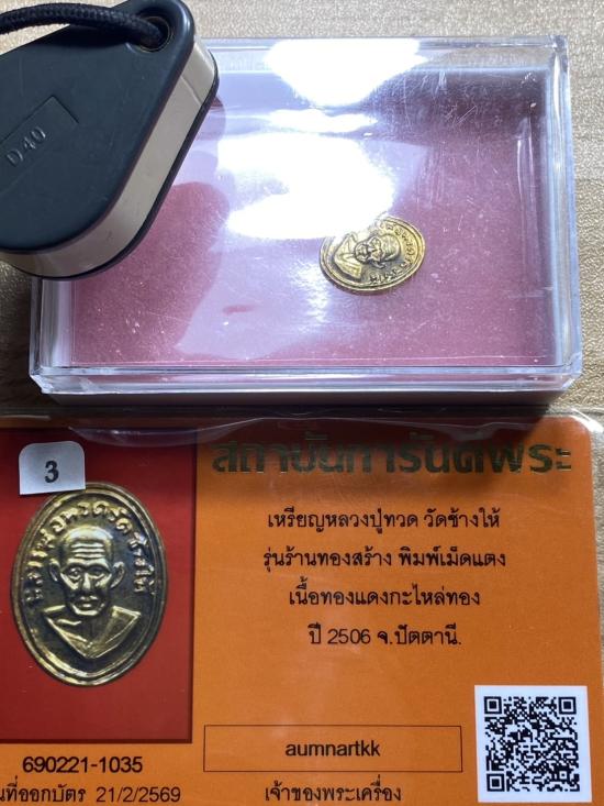 หลวงปู่ทวด เม็ดแตง ( หัวแหวน ) ปี 2506 สวยๆ พร้อมบัตร |