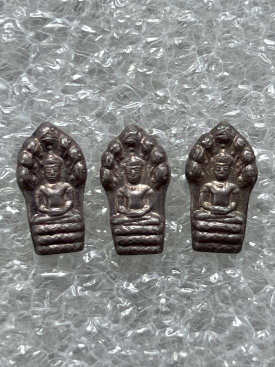 พระนาคปรกใบมะขามเนื้อเงิน หลวงปู่บุญ วัดบ้านนา จ.ระยอง รุ่นอายุ 84ปี 3เม็ด