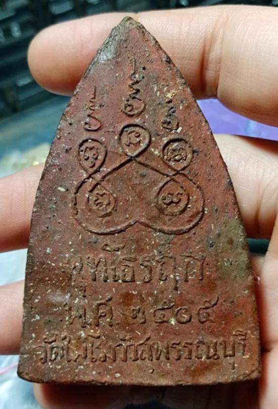 198....!! พระพุทธโคดม (พระพุทธเจ้าองค์ปัจจุบัน) หลวงพ่อขอม วัดไผ่โรงวัว จ.สุพรรณบุรี ปี 2505 เนื้อดินเผา เข้มๆ หลังหนังสือชัด |