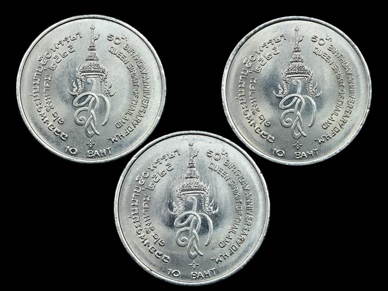 "3เหรียญ"เหรียญ10บาท ที่ระลึก50พรรษาราชินี ปี2525 UNC |