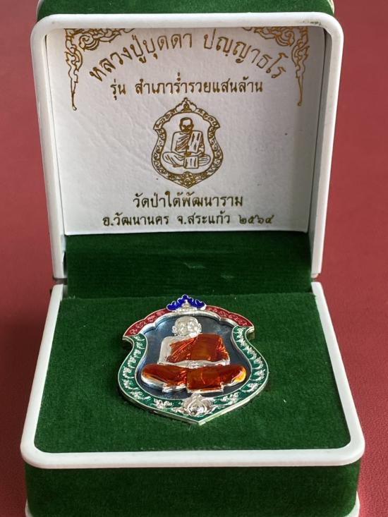 เคาะเดียวแดง หลวงปู่บุดดา รุ่น สำเภาร่ำรวยแสนล้าน เนื้อ นวะหน้ากากเงินขอบเงินลงยา