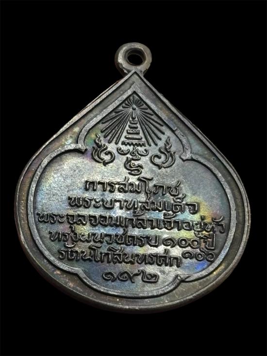 เหรียญหยดน้ำหลวงพ่อเกษม หลังการสมโภชพระบาทสมเด็จพระจุลจอมเกล้าเจ้าอยู่หัว ราคาเบาๆเคียวแดง |