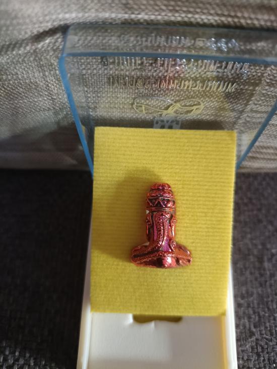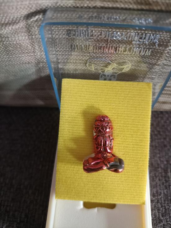 รูปหล่อลอยองค์ พระปิดตาพังพะกาฬ รุ่น1 สร้างเทวาลัยจตุคาม เนื้อทองแดง ผิวแดงๆ ก้นอุดผงปี ๓๐ พิมพ์เล็ก กว้าง ๑.๕ cm สูง ๒ cm พร้อมกล่องเดิมๆ