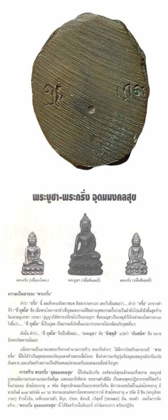 พระกริ่งอุดมทรัพย์ วัดเลา ปี2538 เนื้อสำริด ชนวนมวลสารศักดิ์สิทธิ์มาก เป็นพระกริ่งหล่อแบบโบราณขนานแท้ เข้ากริ่งในตัวตอกโค๊ต ใต้ฐาน 2 ตัว ตัวอุ และตัวอิ อาจารย์ชาญณรงค์ ติกญาโณ วัดเลาเป็นเจ้าพิธี เป็นผู้กำหนดส่วนผสมของเนื้อโลหะ หล่อพระตามตำหรับ อาจารย์ไสว วัดราชนัดดา ผู้เป็อาจารย์ หายาก พุทธคุณ ครอบจักรวาล เมตตา ค้าขาย คลาดแคล้ว |