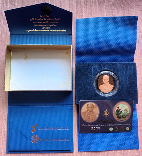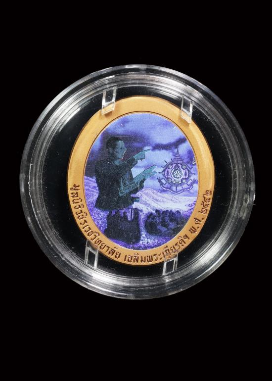 เหรียญในหลวงร.9 ที่ระลึกเฉลิมพระเกียรติ 72 พรรษา หลัง 3 มิติ โฮโลแกรม HUGUENIN SWIT ปี2542 ( ทองแดง ขัดเงา ) กล่องการ์ดครบ