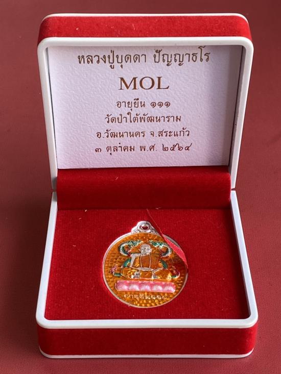 เคาะเดียวแดง หลวงปู่บุดดา รุ่น อายุยืนยง111 เนื้อเงินลงยา นำ้หนัก 19.8กรัม
