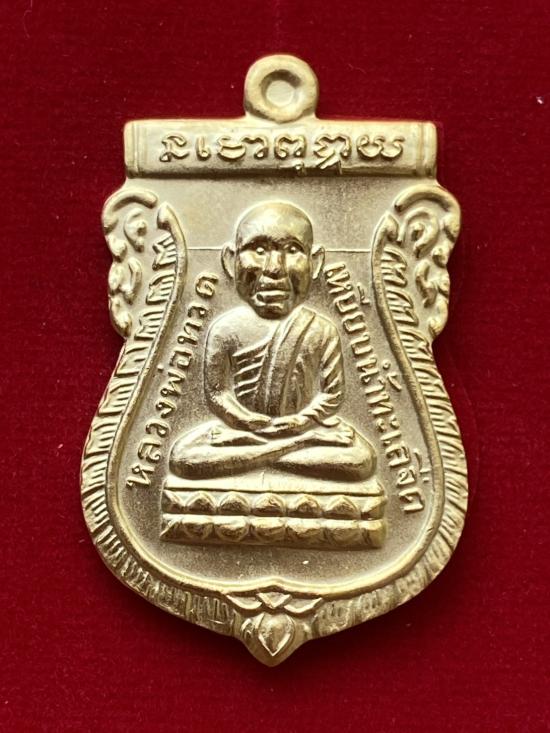 เคาะเดียวแดง หลวงปู่ทวด อาจารย์ทอง รุ่นพิทักษ์แผ่นดิน เนื้อชุบทอง หัวขีดกรรมการ |