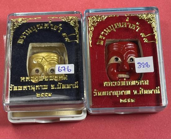 หน้ากากพรานบุญ รุ่น ล่ำซำ99 พ่อท่านพรหมวัดพลานุภาพ จ.ปัตตานี ปี2558 เนื้อว่าน (หน้าแดง+หน้าทอง) พิมพ์ใหญ่