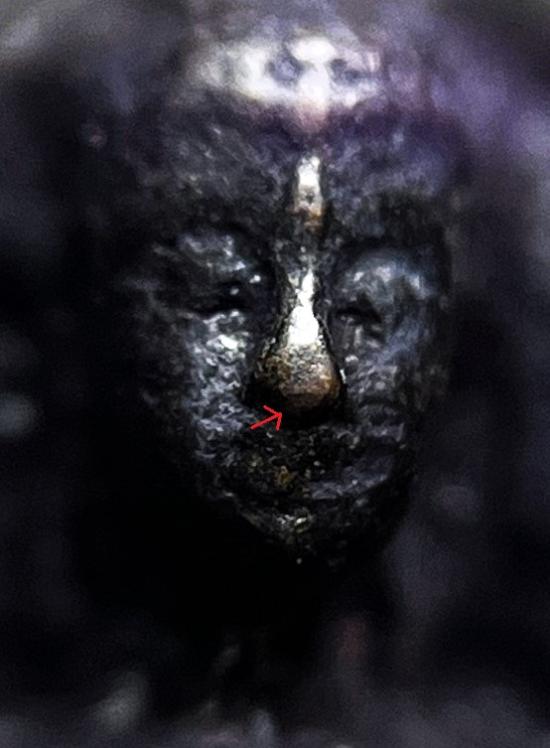 -เหรียญหล่อ จมูกยุบมีตำหนิทั้งบนล่าง + หล่อมีรูตำหนิ ด้านบนมือขวา