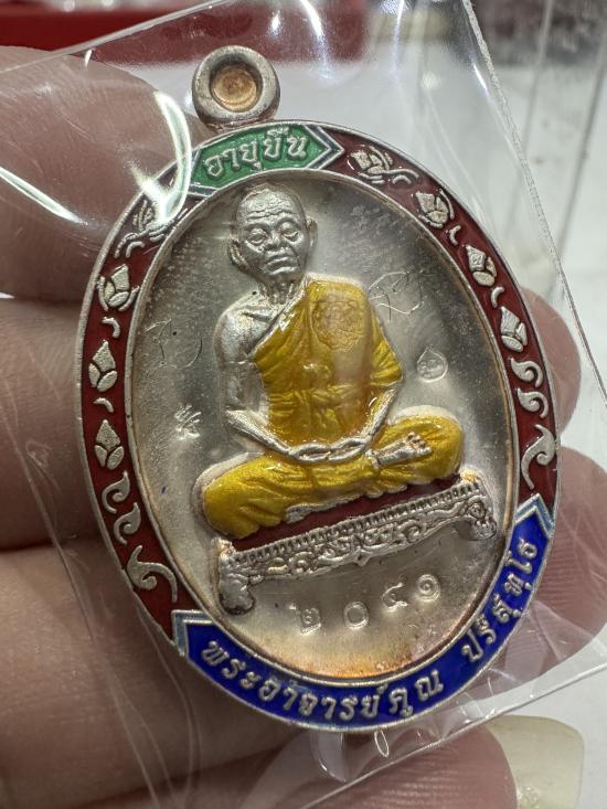 เหรียญอายุยืน พิมพ์เต็มองค์ ปี2553 เนื้อเงิน ลงยา no.2051 มีกล่อง